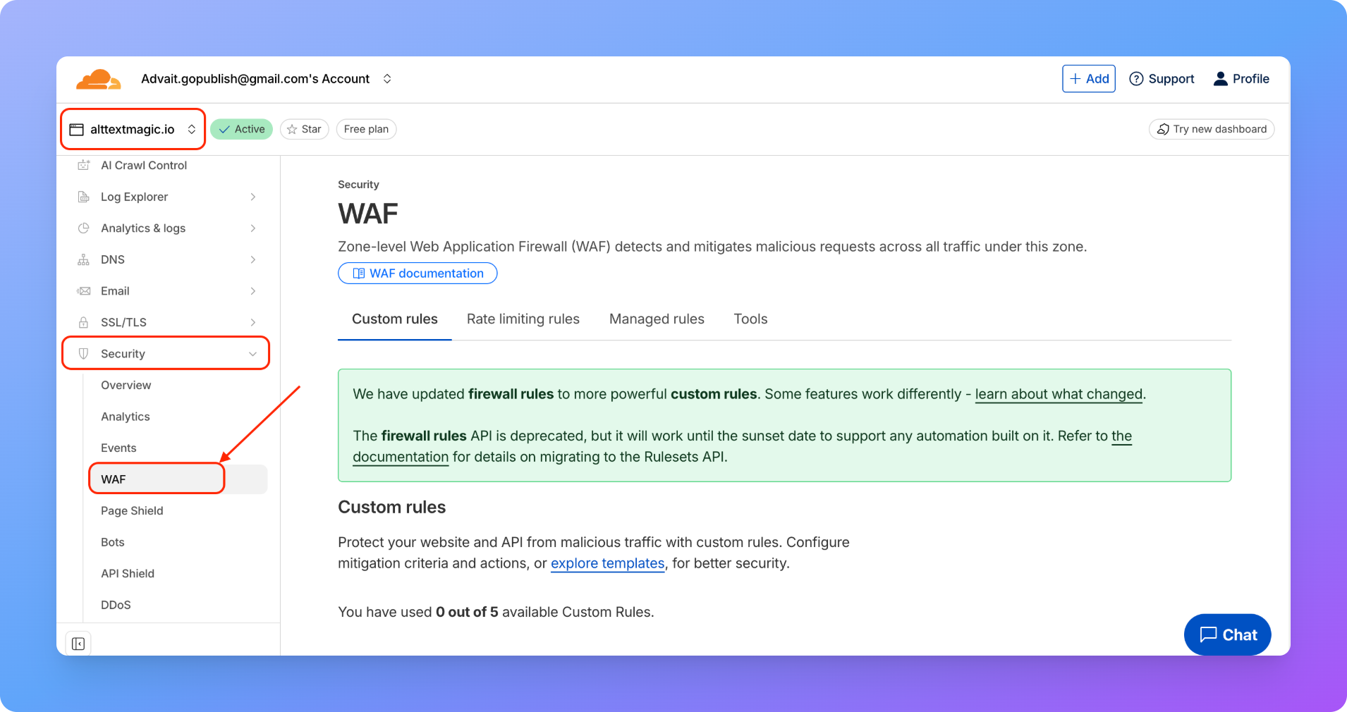 Step 2: Navigate to the WAF Settings